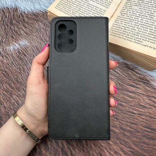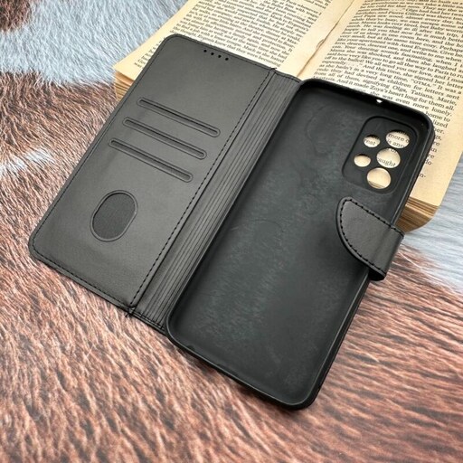 کیف گوشی Galaxy A23 4G سامسونگ چرم مگنتی جاکارتی محافظ لنزدار مشکی A32 5G/