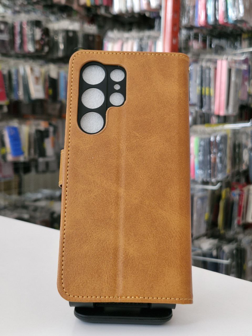 قاب کیفی مگنتی جاکارتی دار قهوه ای Samsung galaxy s22 ultra