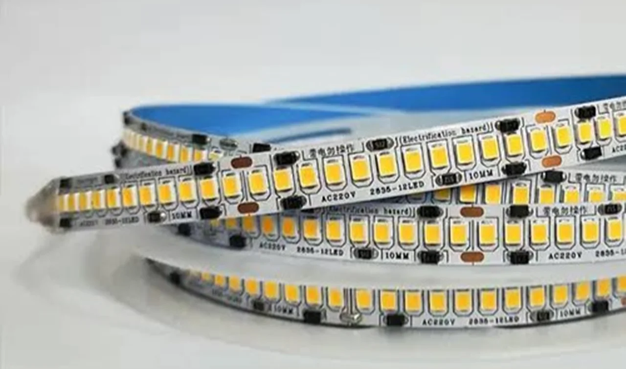 ریسه نواری تراکم 240 دو ردیفه بدون نیاز به ترانس (برق شهر مستقیم)رول 10 متری هر متر 18 وات، این ریسه با برق 220 ولت به راحتی روشن شده و پشت چسبدار میباشد و نیاز به قاب لاینر برای خنک کاری دارد.